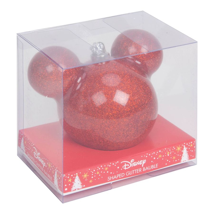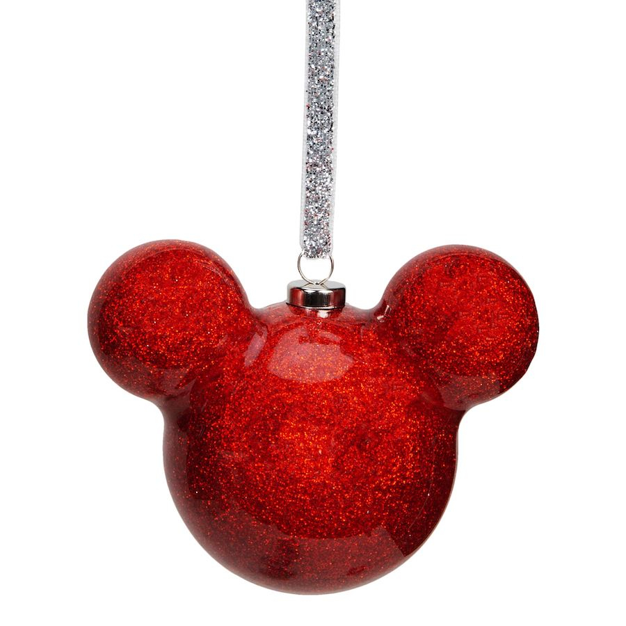 A 6 cm átmérőjű kerek üveggömb az ikonikus Mickey alakot mutatja, kerek fülekkel. A gömb fényes üvegből készül belső piros csillogó bevonattal és ezüst csillám függő szalaggal. Egy márkázott ajándékcsomagolásban érkezik, így tökéletes ajándék minden Disney rajongónak.